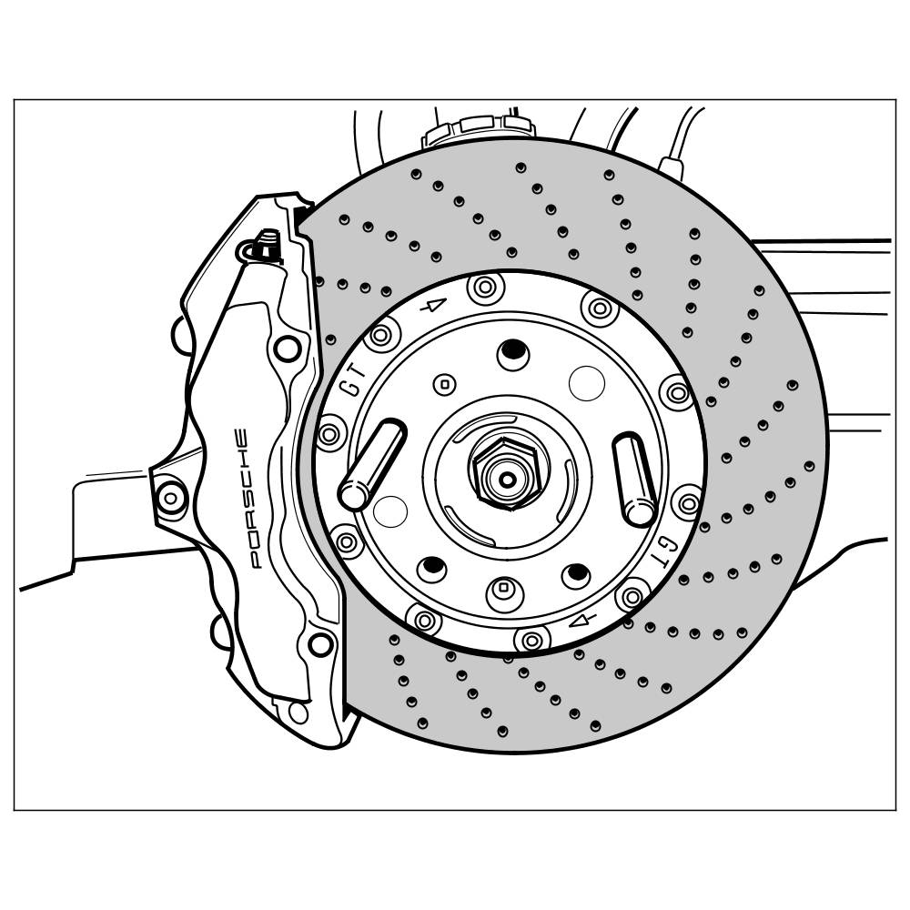 Screw two assembly aids (assembly pins) into the wheel hub to prevent damage to the PCCB brake discs.