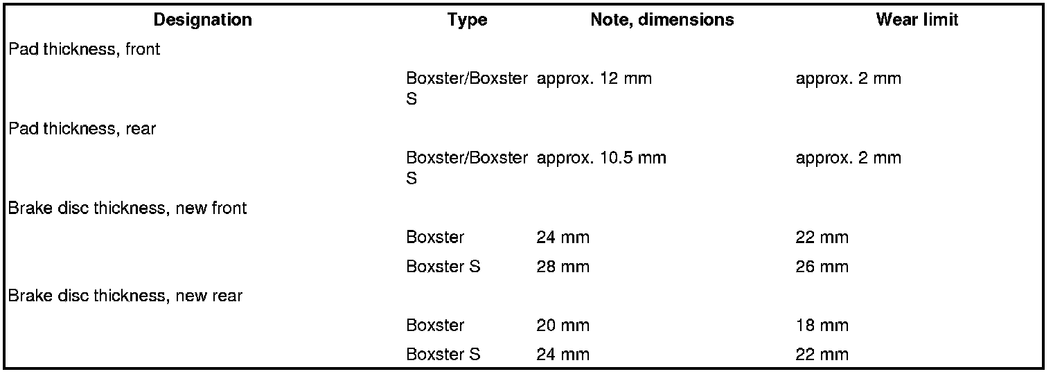 -> The brake pads must be replaced when the brake pad warning indicator lights up, but no later than when there is a residual pad thickness of 2 mm.