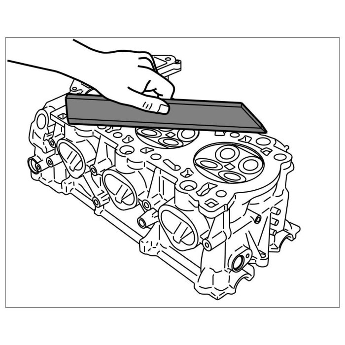 3. Check combustion chamber sealing face of the cylinder head for distortion (flatness) using a straight-edge and feeler gauge.