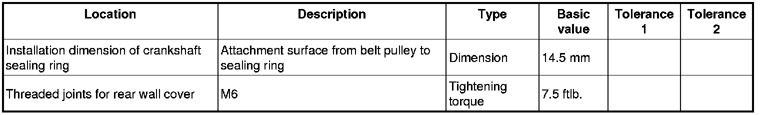 4. Check that the sealing ring is seated correctly. To do this, measure at four points, offset by 90°, from the belt pulley attachment surface on the crankshaft flange to the sealing ring (outer radius). => Dimension: 14.5 mm