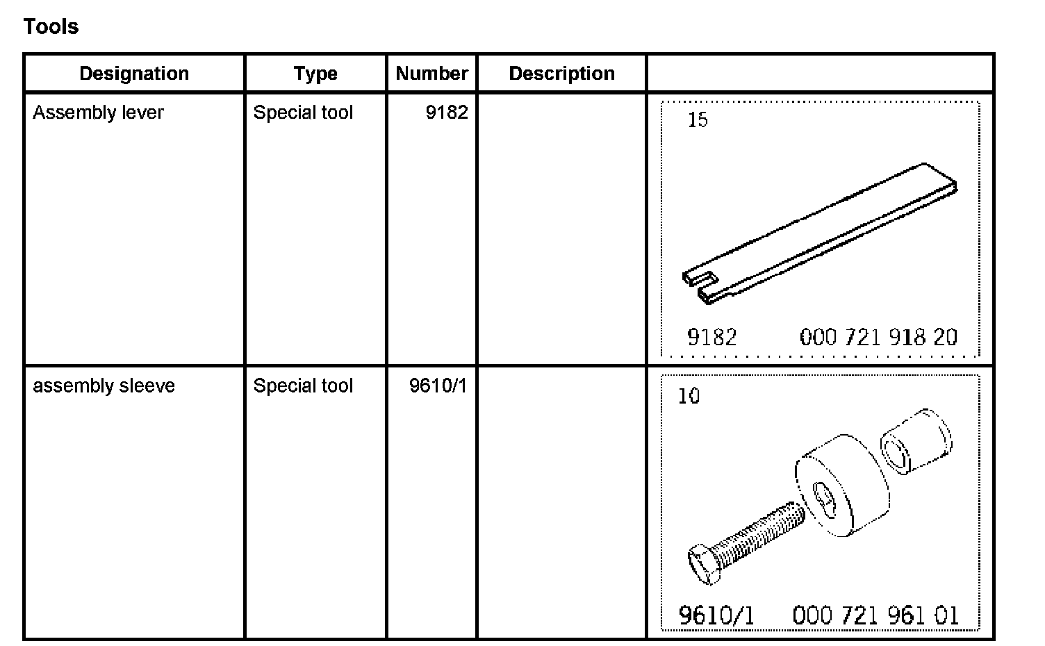 ^ The standard shaft seal is pressed 12.5 mm in, measured from the end of the flange. The new sealing ring is pressed 14.5 mm in using the special tool assembly sleeve 9610/1 in order to generate a new running track.