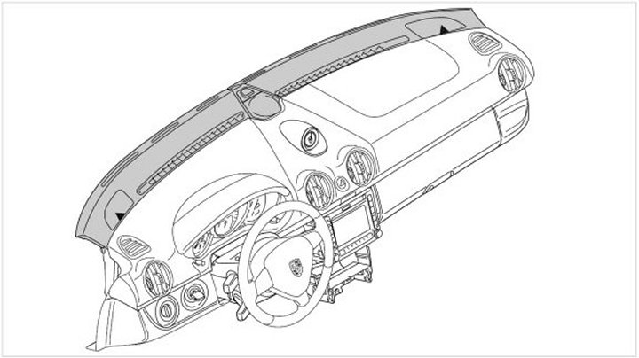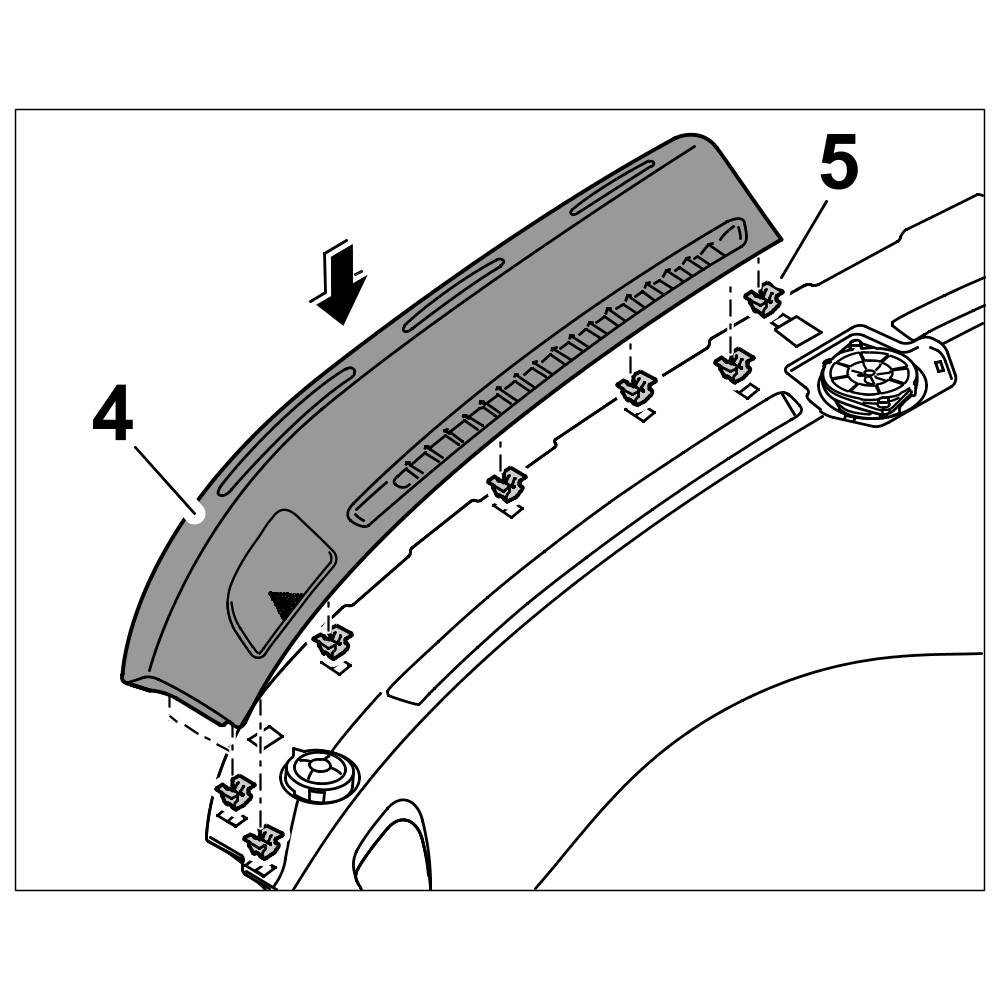 2. Clip cover for dashboard (defroster trim) into place on left and right -4-.
