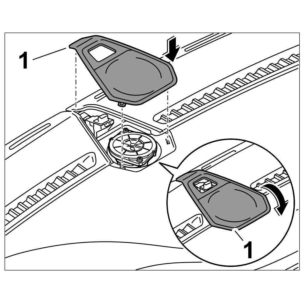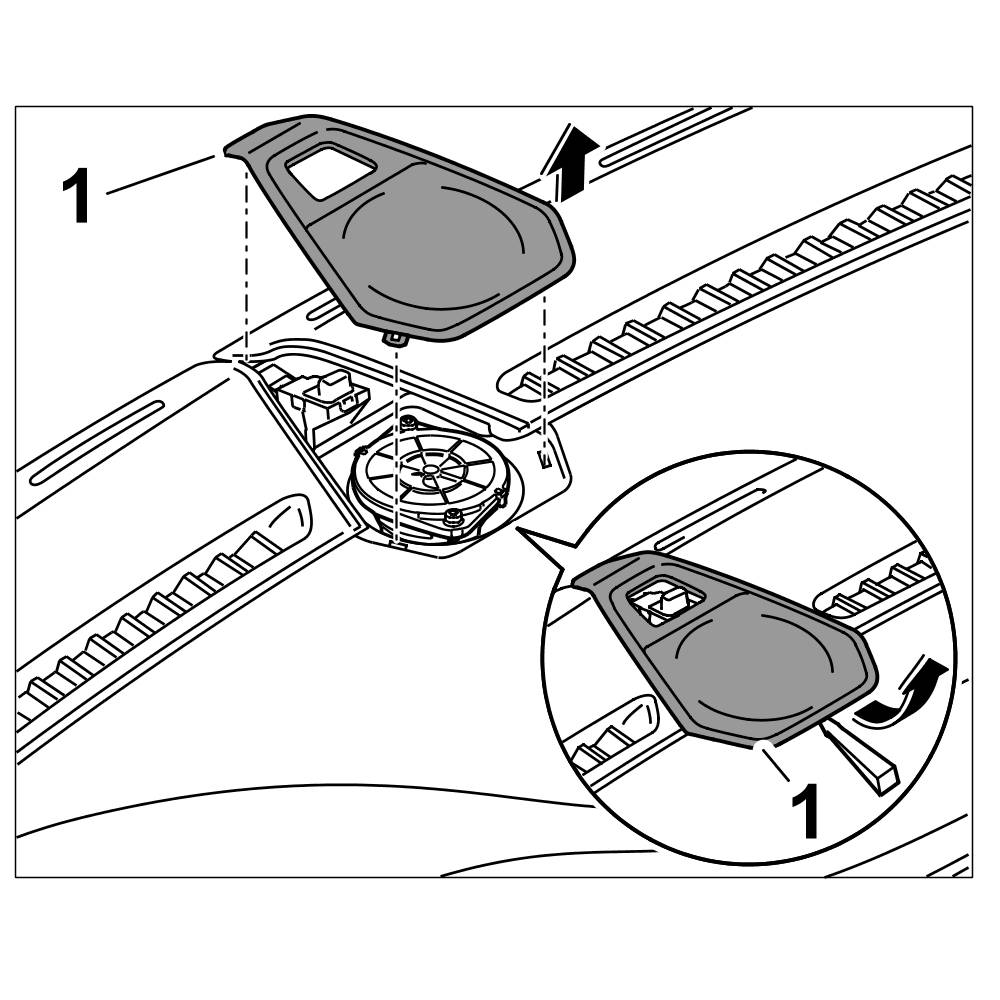 2. Position centre dashboard cover (defroster trim) -1- and clip in -arrow-.