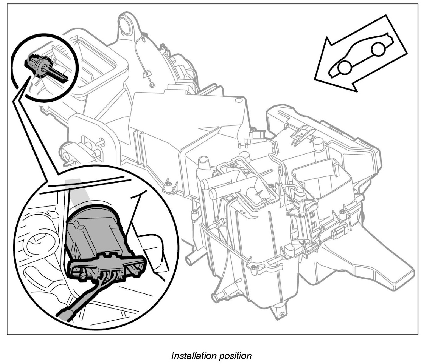 3. Turn temperature sensor through 90 degrees and pull it out of the heating/fresh-air unit.