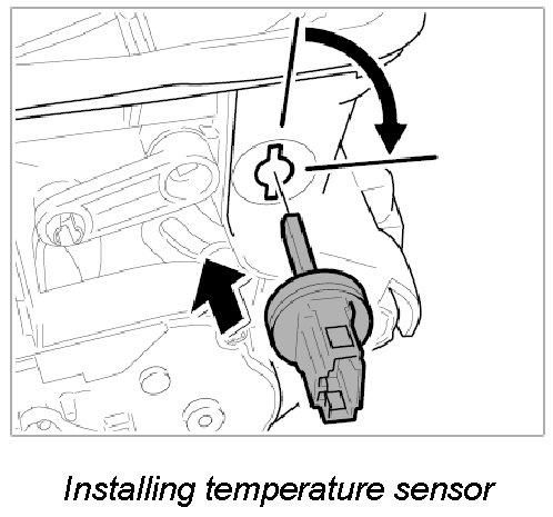 2 Insert temperature sensor into the heating/fresh air unit and turn through 90 degrees.