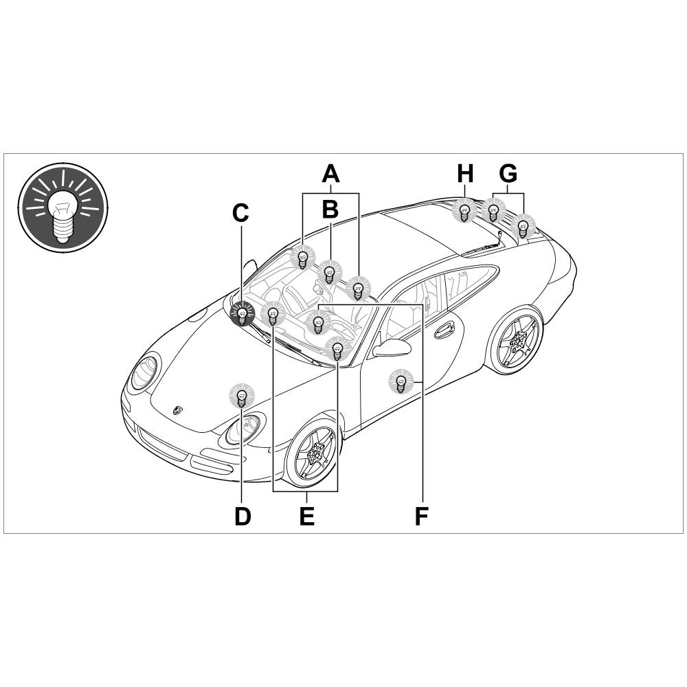 Overview of glove compartment light, shown on the 911