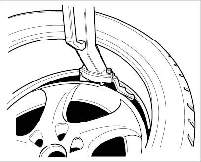 ^ For correct tire mounting, follow the instructions provided for the tire removal/mounting machine.
