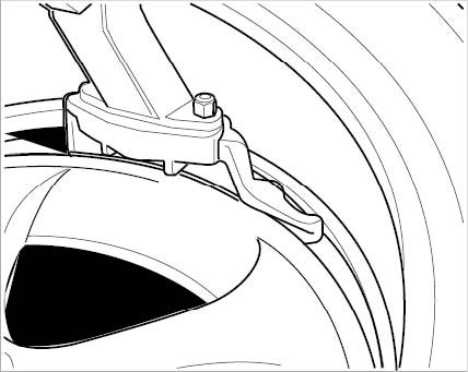 ^ Constantly check that the plastic protection (on the mounting lever) is positioned correctly in order to protect the rim.