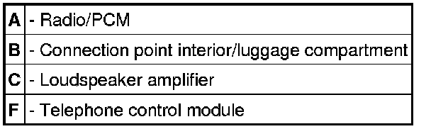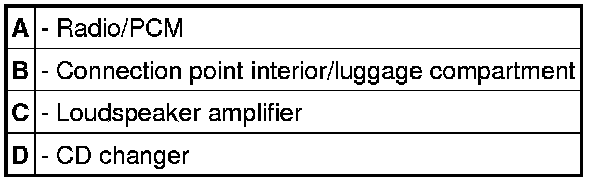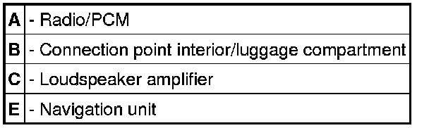 Depending on the equipment I No., the installation positions of the audio components in the front luggage compartment differ.