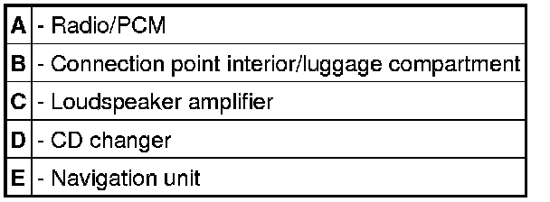 The graphic clarifies the cabling of the individual MOST control units which vary according to their equipment.