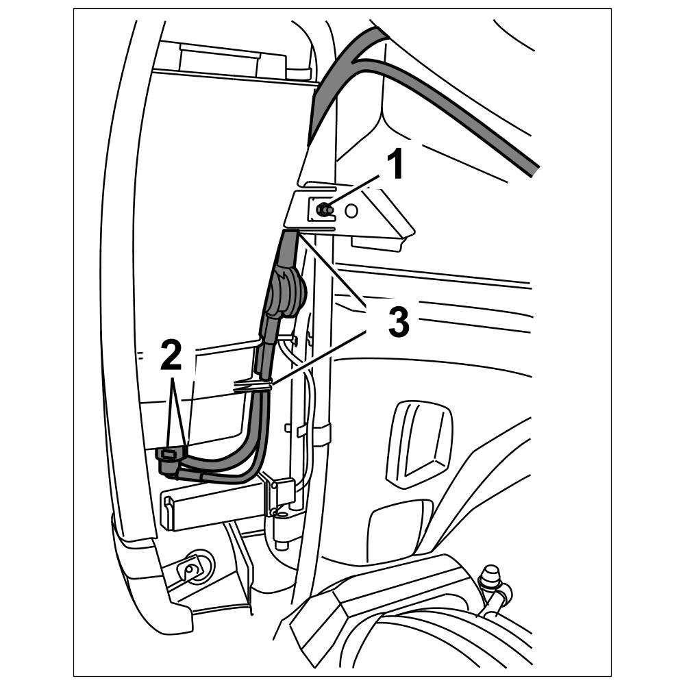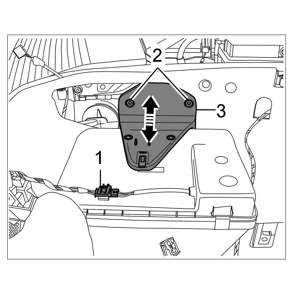 2. Slide plastic holder for the canister -3- into the guide and fix to the plenum panel. Screw in two Torx screws M6 -2- and tighten. => Tightening torque: 7.5 ftlb.