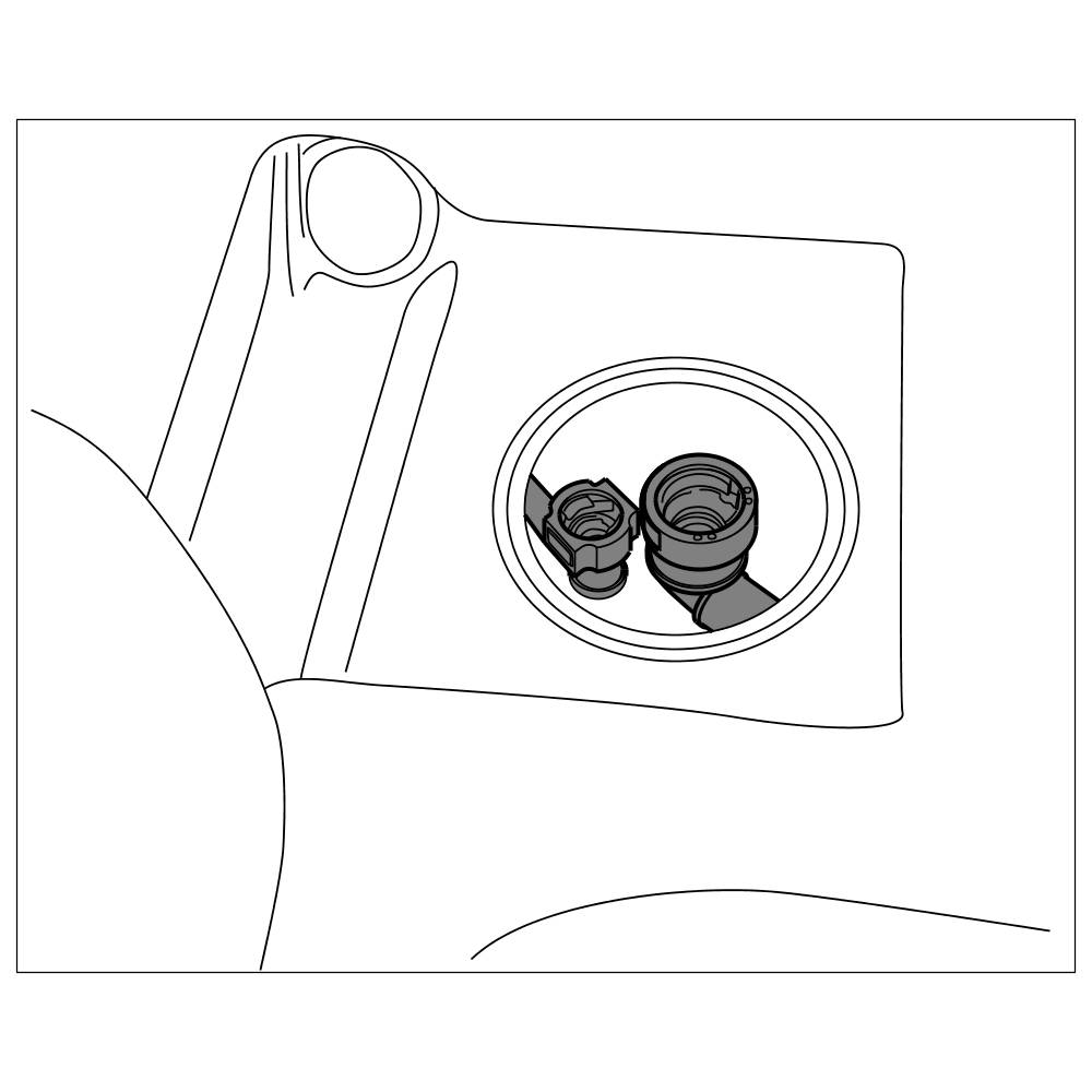 2. Connect plug-in couplings to the underside of the canister and clip in the lines. Screw in collar nut M6 on the holder and tighten. => Tightening torque: 7.5 ftlb.