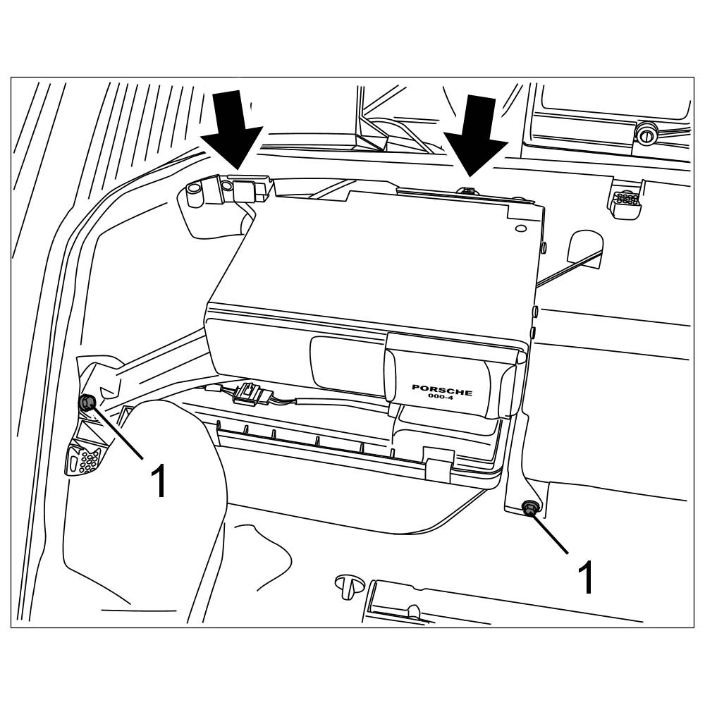 3. Screw in and tighten fastening screws M6 -1- for CD changer support. => Tightening torque: 10 Nm (7.5 ftlb.)