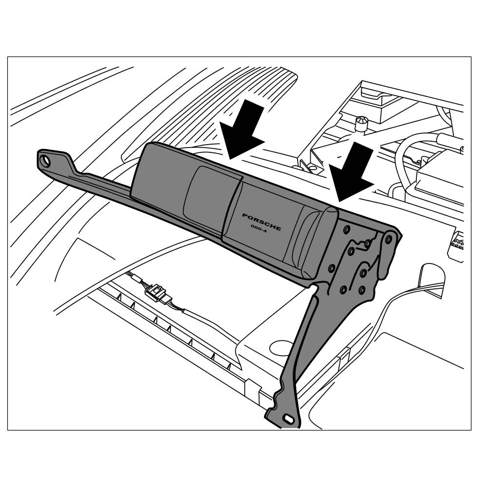 2. Engage support together with CD changer on the plenum panel by means of the retaining clips -Arrows-.