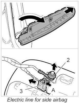 4. Unlock the electric connector for the side airbag -3- and remove it -A-.