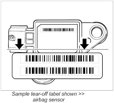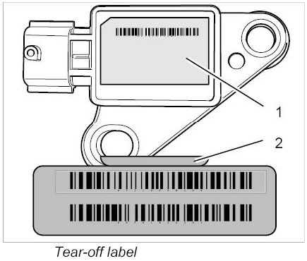 INFORMATION: If a new component (e.g. sensor, airbag control unit, airbag unit) of the airbag system has to be installed, the new component will be supplied with a barcode sticker (tear-off label).