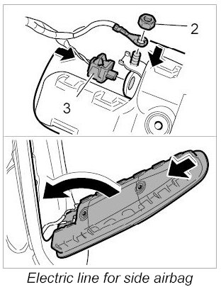 1. Push on the electric connector for the side airbag -3- and lock it.