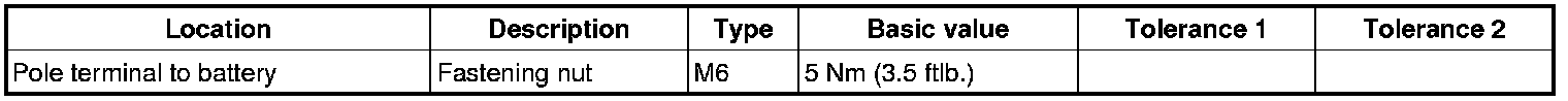 4. Connect the negative cable. => M6: 5 Nm (3.5 ftlb.)