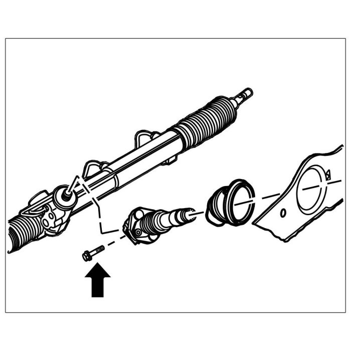 2. Put steering gear in centre position. Make sure that the clip for steering gear pinion is present (steering shaft assembly aid). Mount the steering shaft (universal joint) to the steering gear in the correct position using new hexagon-head bolt -Arrow-.