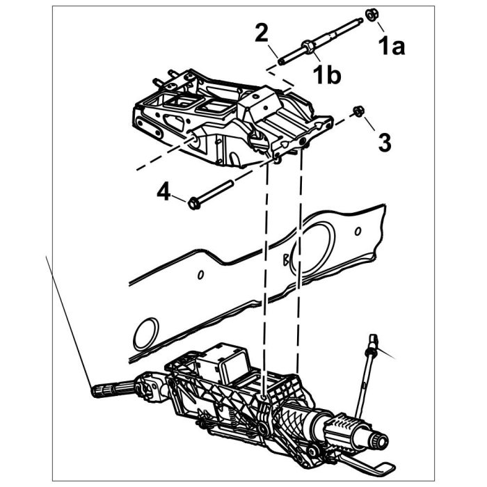 5. Loosen upper steering column mount (loosen lock nut -3- /remove hexagon-head bolt -4- ) and extend the steering column.