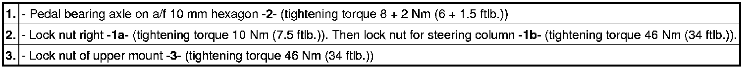 4. Loosen lower steering column mount. To do this, loosen the lock nut -1- approx. 3 turns. Then unscrew the pedal bearing axle on the hexagon -2- approx. 2 turns (anti-clockwise).