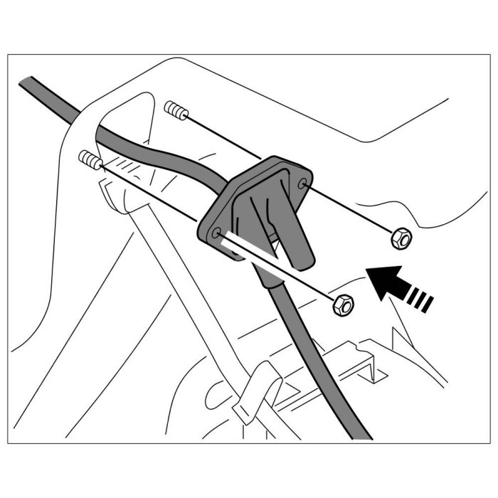 1. Push selector lever cable through the bulkhead panel from the interior of the vehicle and fit fastening nuts.