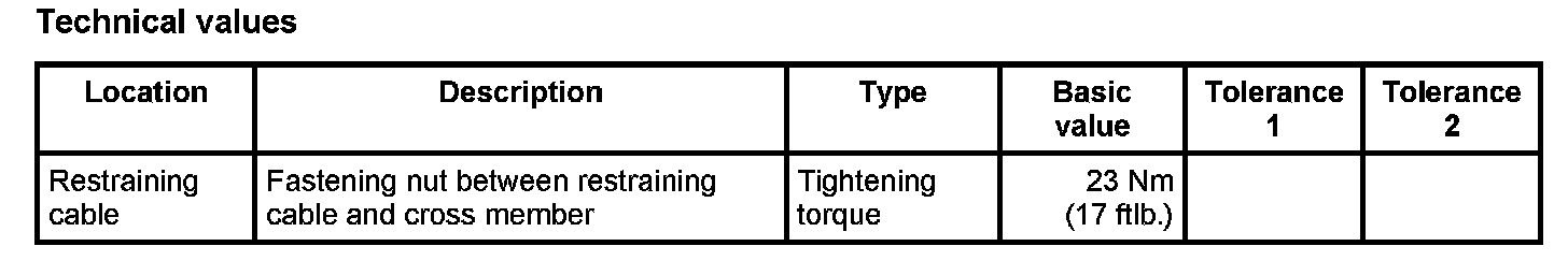 4. Unscrew fastening nuts for restraining cables and remove restraining cables from crossmember.