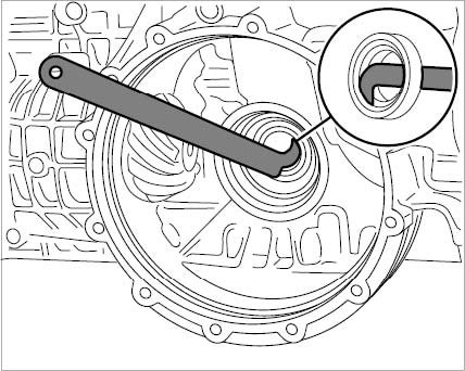 Information: Hook VW 681 must be fitted behind both sealing lips of the sealing ring because fitting it on the outer circumference of the sealing ring can damage the contact surface in the transmission housing. Guide the tool carefully while pulling out.