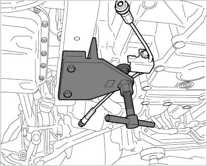 5. Retaining device P 9624/1 must then be screwed to crossmember, then turn spindle upwards and support engine.