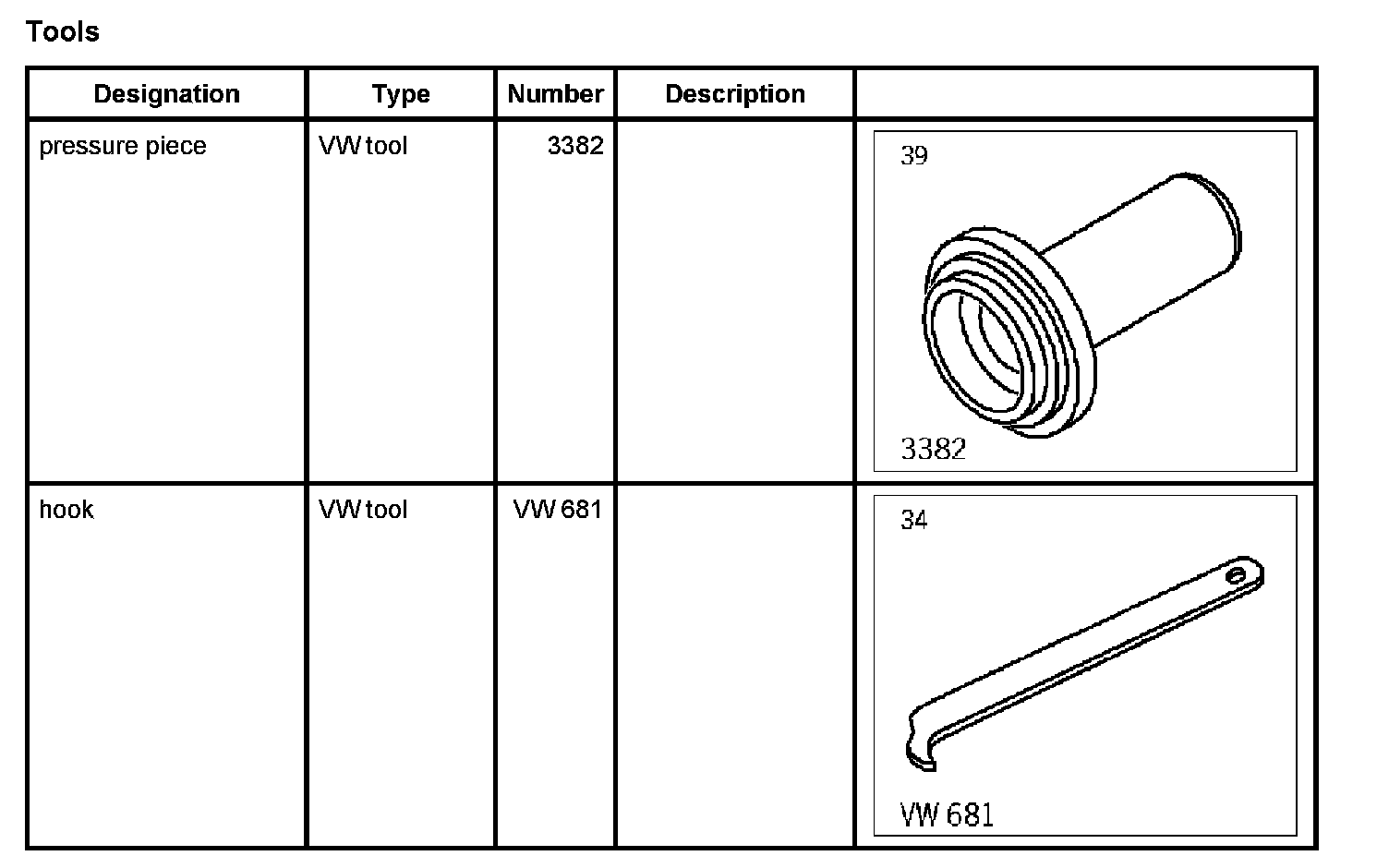 1. Remove sealing ring with hook VW 681.