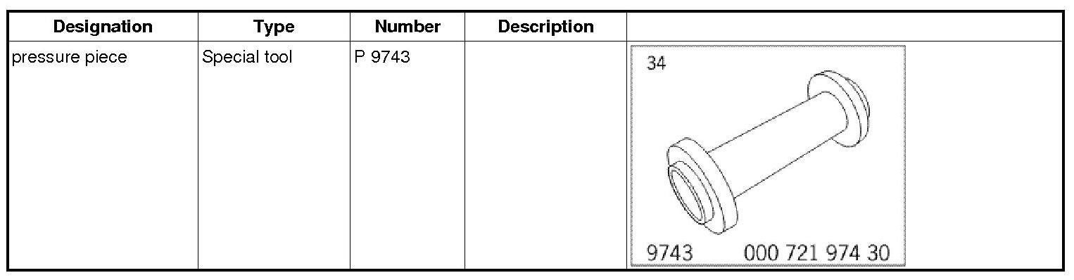 1. Place new sealing ring on side of pressure piece P 9743 with a cut-out.
