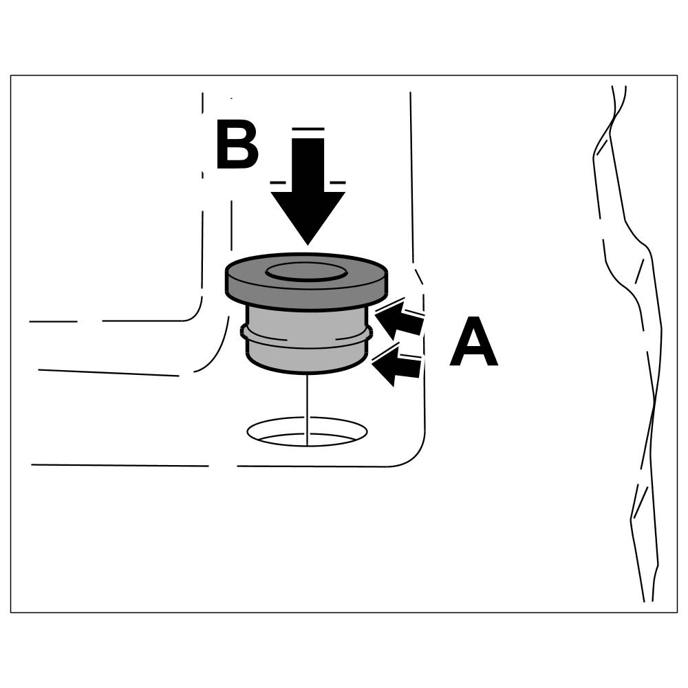 1. Apply a suitable rubber lubricant (tyre mounting paste) to the sealing surface -arrows A- and press the rubber seal into tank -arrow B- until it is felt to engage.