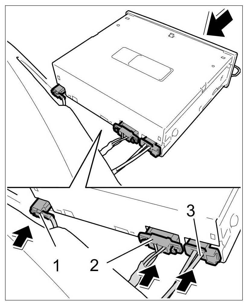 1. Plug in the electric plug connections -1, 2, 3- on the navigation unit until the plugs engage securely.