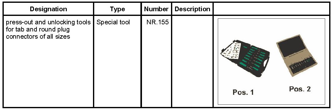 2. Position the press-out and unlocking tools for tab and round plug connectors of all sizes NR.155 on the primary locking mechanism and lift the locking mechanism.
