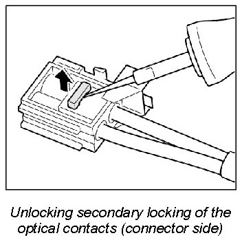 When exchanging the LWL, the optical contacts from the plug connection must be removed.