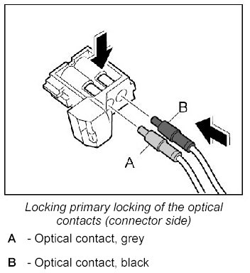 3. Connect the connectors for the new optical waveguide to the affected parts until the connectors are felt to engage. The illustration shows the connector on the CD changer as an example.