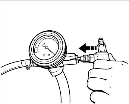 5. Connect the vacuum pressure gauge of the bleeder tool to the flexible extension. When doing so, ensure that both shutoff valves are closed (positioned at 90° with respect to flow direction).