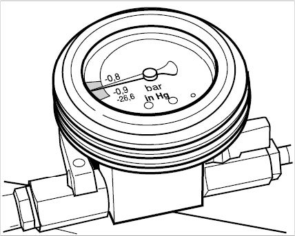 ^ When the pressure gauge pointer is in the green area of the display scale, a sufficient vacuum has been built UP