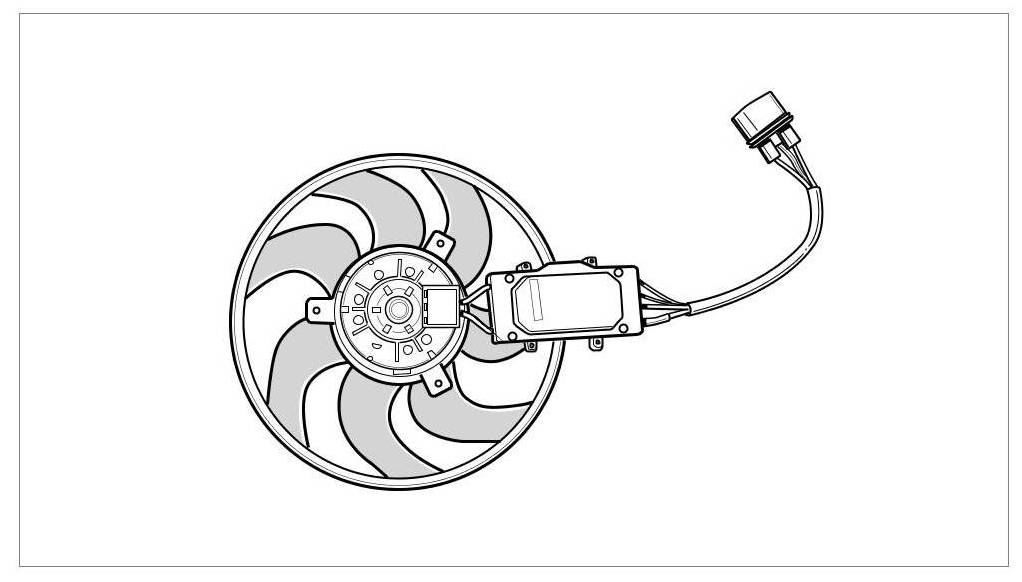 1. Push fan cable with control module from underneath through the radiator frame.