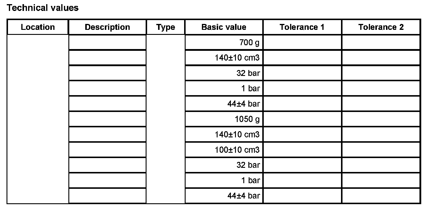 - Pressure relief valve purge pressure: - : 44 ± 4 bar