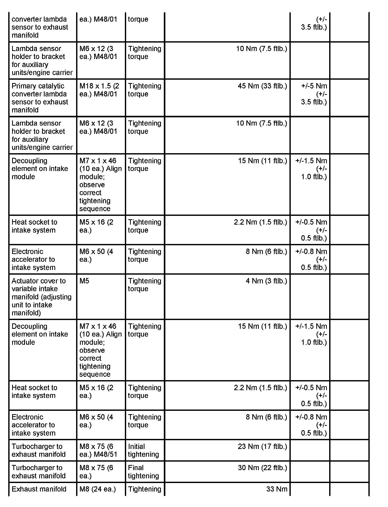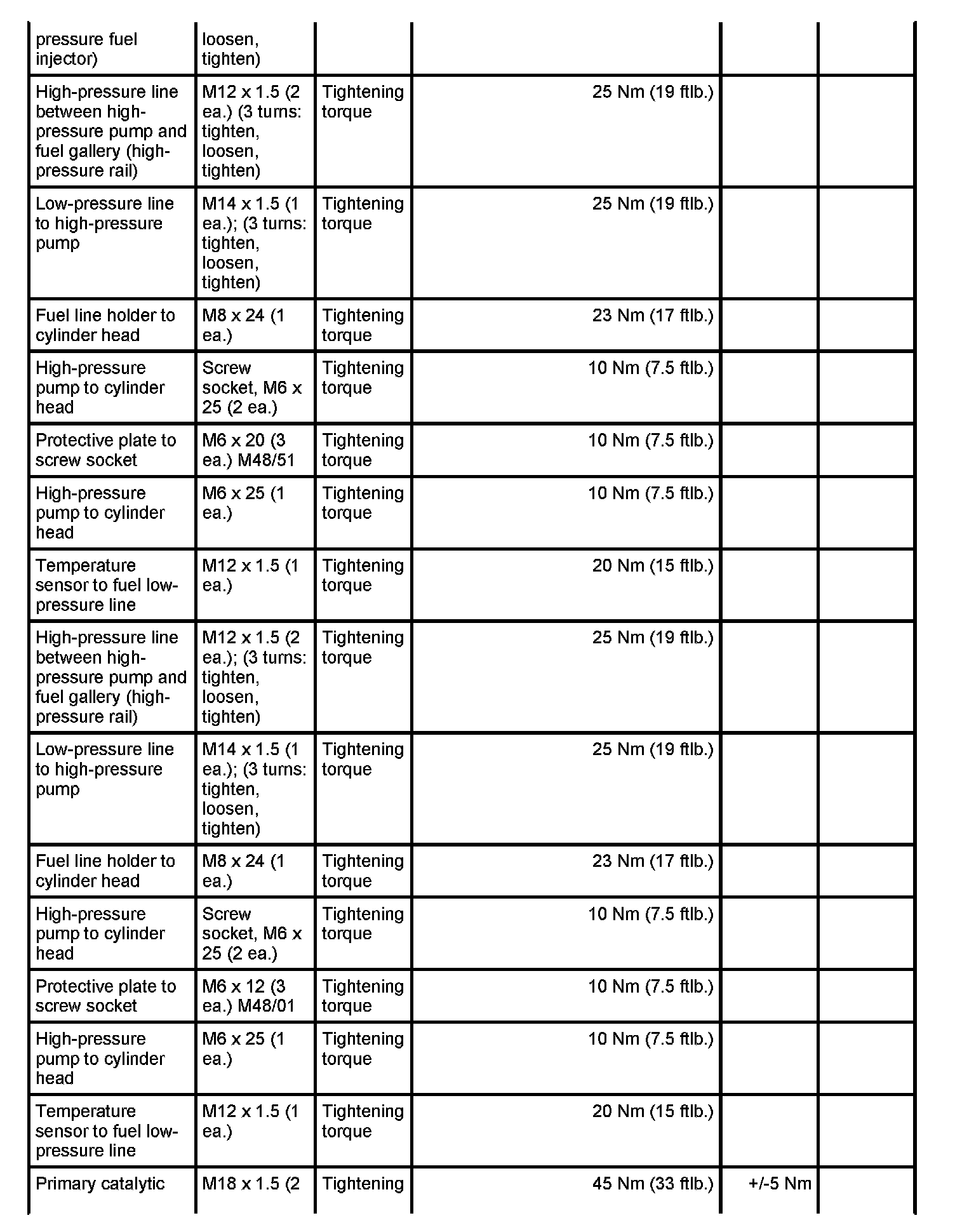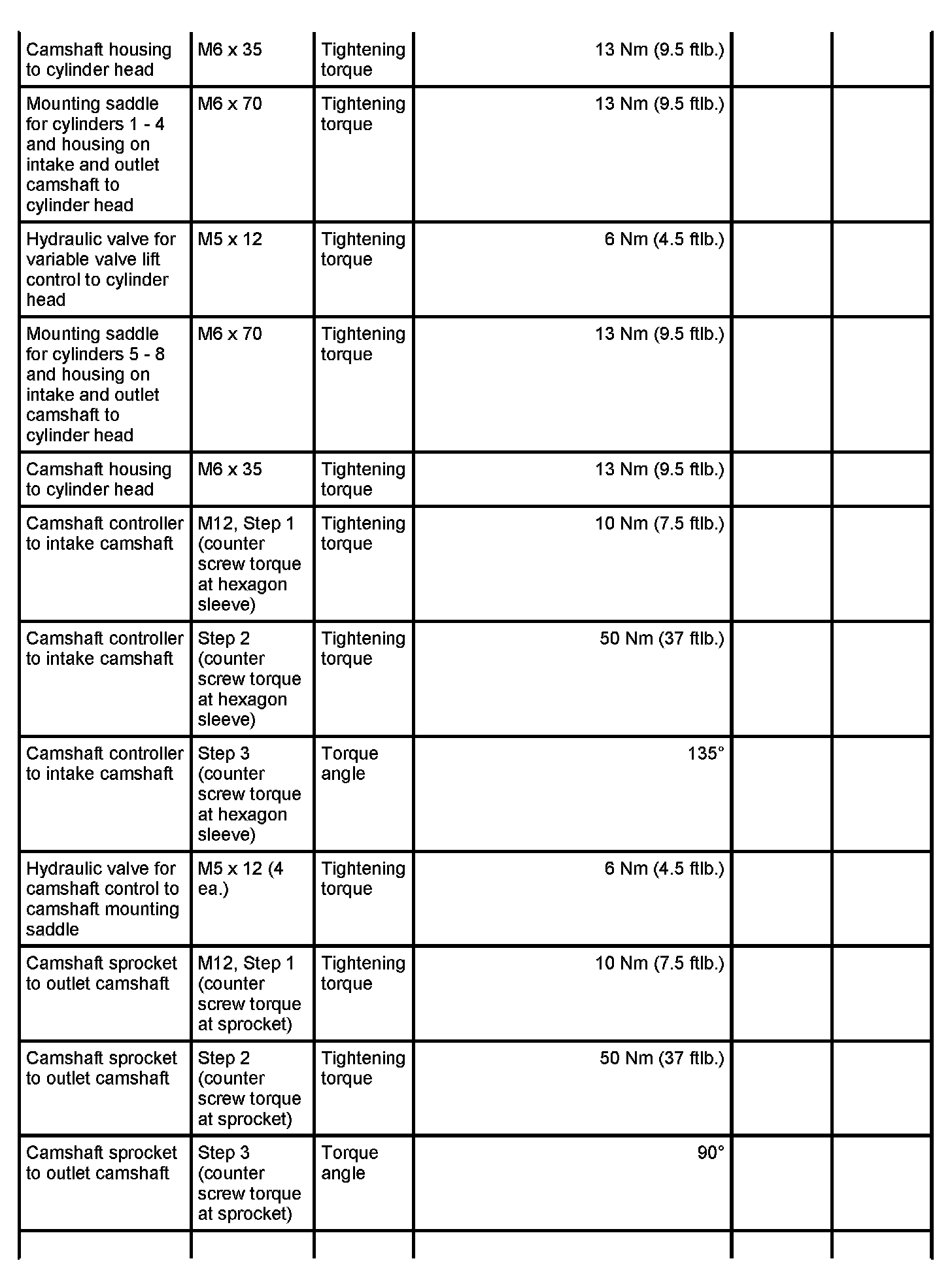 4 - Holder - Initial tightening: 4 Nm (3 ftlb.) and - Final tightening: 90 degrees