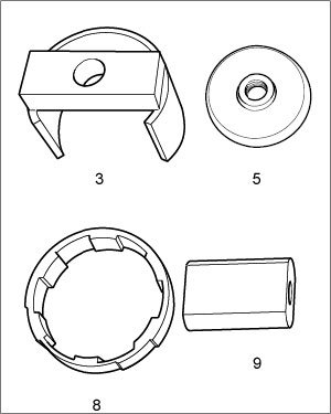 -5- - Press-out plate (For pressing out the chassis subframe bearings.).