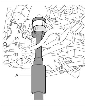2. Loosen the suspension subframe bearings on both sides. Loosen the spindle carefully until there is sufficient clearance for using the press-out tool.