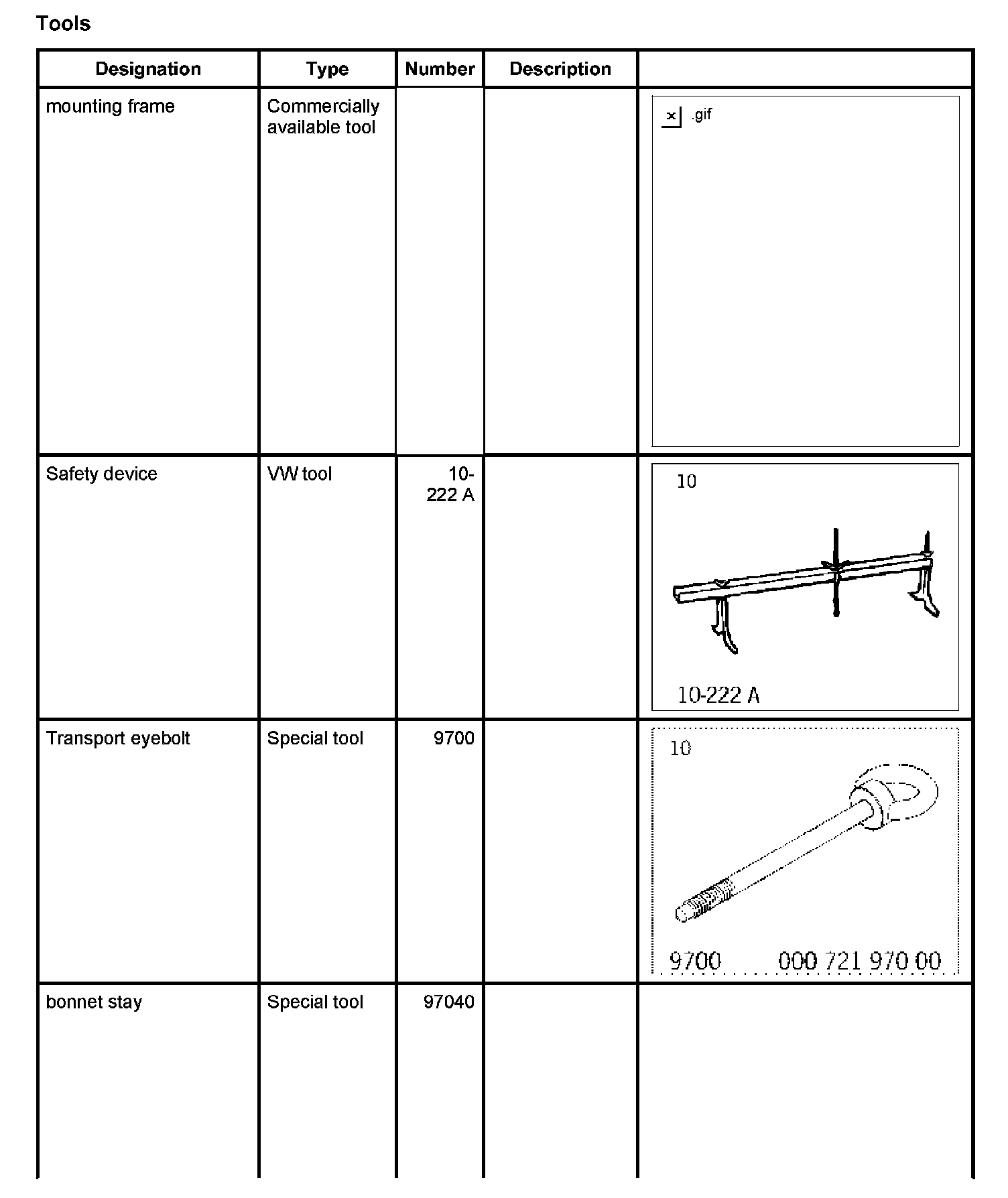 ^ In Point 4, the transport eyebolt 9700 cannot be screwed in on 2nd generation V8 vehicles. There are perforated plates on the engine for transporting and raising it to the safety device.