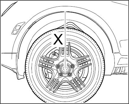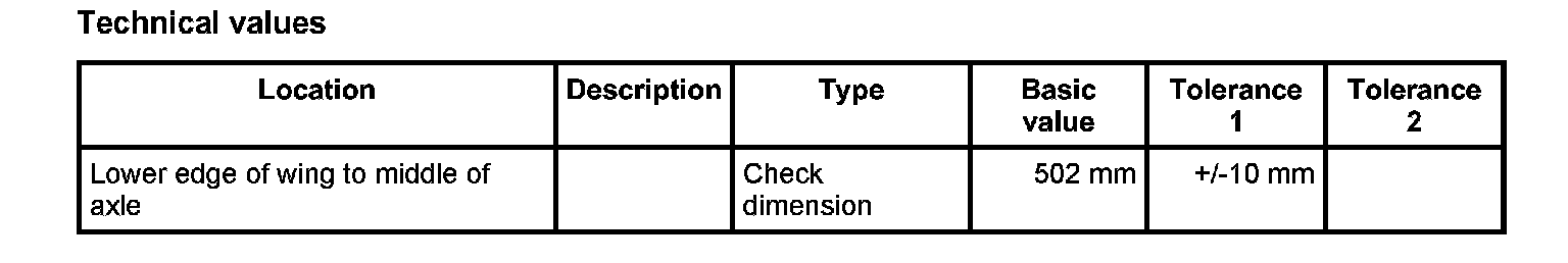 ^ The entire threaded parts of the axle must be tightened in vehicle position. Vehicle position means: vehicle standing on the wheels, or the wheel suspension is raised using a universal vehicle lift. -Dimension X-, corresponds to vehicle position. -> Check dimension: 502 mm ±10 mm