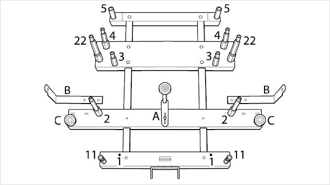 1. Position the -front-axle carrier- on the mounting frame.