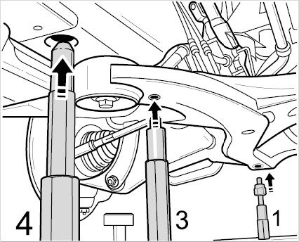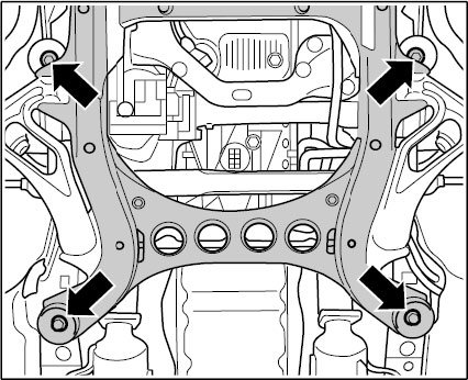 ^ The spring struts are not removed in order to remove the front axle carrier.