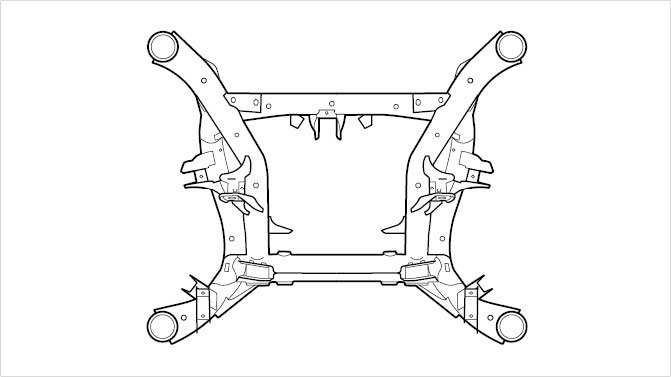 When working on the exhaust system, rear axle and vibration dampers, position the mounting frame correctly on the lifting platform and carefully remove the rear axle housing. Watch out for falling parts when installing and removing components on the mounting frame.