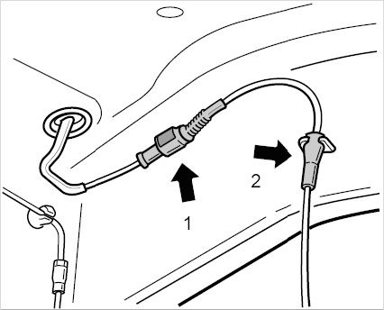 5. Unclip both brake cables from the Quick-fit attachment and remove them from the cable guides. Hang the cables in a suitable place to prevent damage.