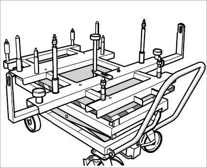 11. Position the lifting platform with the mounting frame under the rear axle housing.
